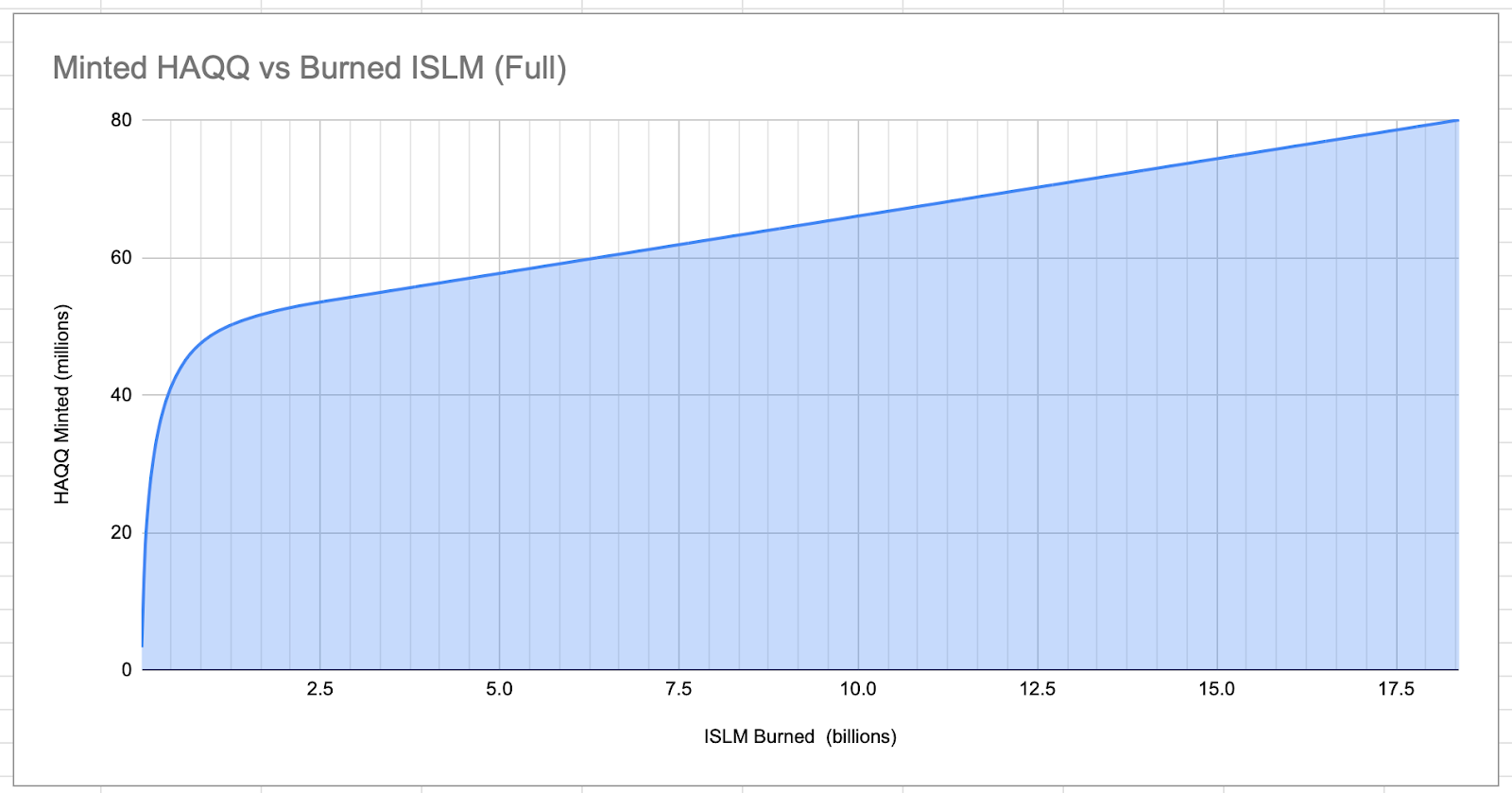 When ISLM is burned, HAQQ is minted in return. The process follows a burn curve: earlier participation receives more favorable terms, and the curve gradually adjusts as more ISLM supply is burned.